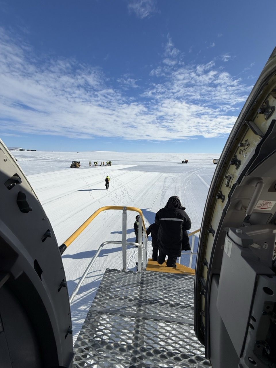The empty space in the middle is to allow you to put on all your survival gear as they begin decent into the ice runway. After putting on the required clothing, they drop the temperature inside the cabin so you don’t overheat and then next thing you know you’ve touched down in one of the smoothest landing you will ever experience.